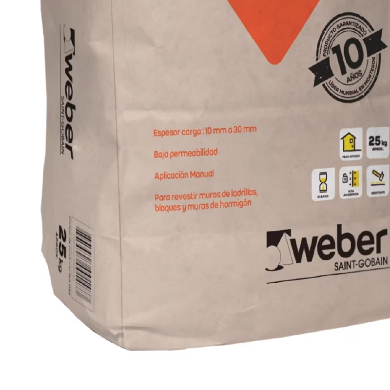 Mortero cementicio predosificado en seco formulado especialmente para realizar estucos en muros interiores de albañilería de ladrillos prensados y artesanales, bloques de hormigón y muros de hormigón rugoso. Permite capa de carga adherencia y terminación.